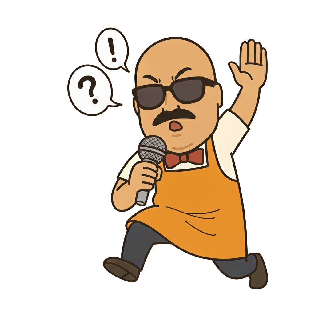 ファルコン吉田さん!こんな急にどうしたんですか?連絡もなしに、台風みたいに飛んできて!まずはこれ食べなさい、今朝採れたてよぉ!